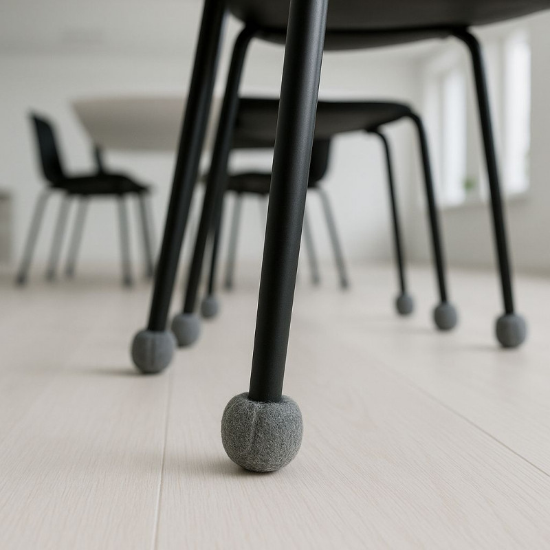 For easiest application, turn the furniture turned upside down. Press the ball on to the leg, the flaps should go down into the ball. You can leave any old pads/caps on the leg as long as they fit into the ball. If needed, you can cut up the ball a little extra with for example a carpet knife.